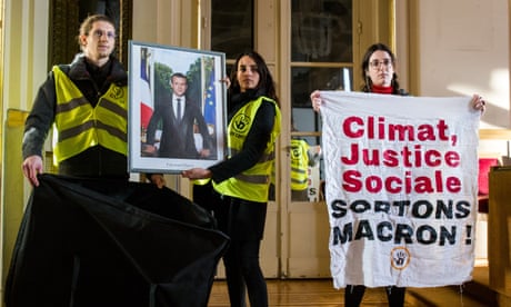 Taking Macron down: climate protesters strip French town halls of portraits